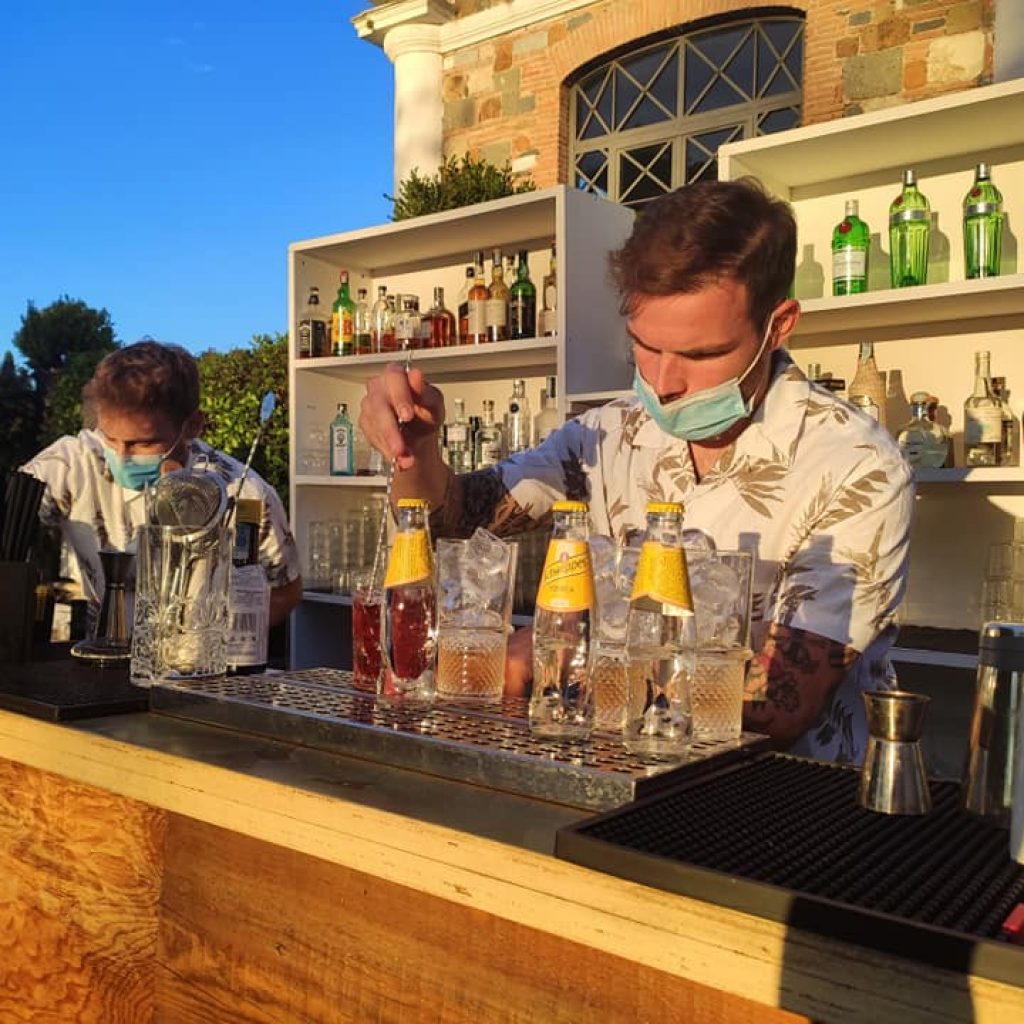 Fulcro del giardino è sempre il cocktail bar, che quest’anno vanta nuove etichette di prestigio, scelte per consentire di personalizzare i cocktail con i distillati preferiti dal cliente. Aldilà del prato un ampio basolato ospita i tavoli e le leziose sedie in ferro battuto del ristorante. Qui trovano collocazione 200 coperti ben distanziati, un forno a legna per le pizze e un palco per la musica dal vivo. La bella struttura “neoclassica” della villa in pietra naturale policroma si staglia sempre sullo sfondo: al suo interno due ampie sale (150 coperti in totale), una più classica e l’altra dal look più contemporaneo, appena riaperte al pubblico nel rispetto dei Dpcm anticovid.