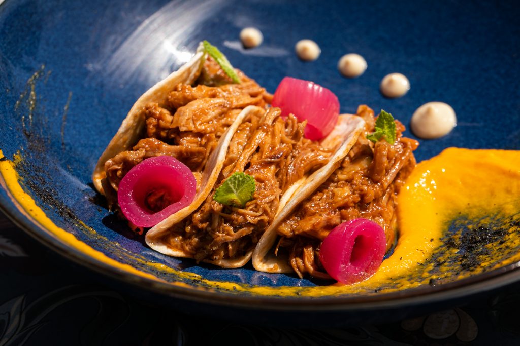 La proposta dello chef è varia e divertente, perchè mixa piatti veraci e spunti gourmet, declinati in ricette nostrane ed esotiche. Largo quindi a stuzzicanti entrées quali fritti (dai 2,50 agli 8,00 euro), tacos e raffinate tartare di carne e crudi di pesce, per passare poi ai primi (dai 12 ai 16 euro) che alternano classici come lo Spaghettone Mancini con le vongole o il Fusillone all’amatriciana, a piatti più sofisticati come i Tortelloni con ripieno di faraona e melanzane bruciate, su brodo ristretto di faraona. Tra i secondi ( dai 12 ai 20 euro), Tartare di scottona con uovo pochè croccante e spuma di caprino, Tataki di tonno, maionese, passion fruit e katsuboshi, si contrappongono a un “comfort food” che accontenta tutti come la parmigiana di melanzane.