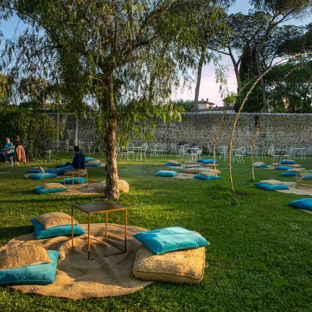 Luce è cucina, pizzeria e cocktail bar, tuttavia il momento migliore per venire qui resta il tramonto, per godersi, in attesa della cena, un piacevole aperitivo sull’erba con gli amici, cullati dalle note del djset. Tra morbidi cuscini color ottanio, tappeti di rattan, igloo di bambù e tante lucine suggestive, si respira subito aria di vacanza. Il parco alberato che circonda la villa è ancora quel salotto a cielo aperto, che ha fatto innamorare i romani l’anno scorso.