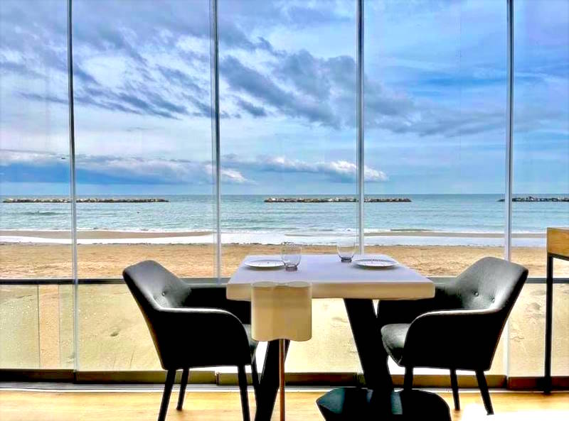 35 coperti per 8 tavoli, incluso il tavolo dello chef in veranda, con molte possibilità dall’aperitivo al dopo cena nel dehor dedicato. Il pranzo prevede un menu easy di tre portate a pranzo, tre percorsi con la possibilità di abbinamento vini, e proposte alla carta. La Cantina annovera circa 200 pregiate etichette per tutte le voglie e tasche. Staff giovane, dinamico e preparato. Un indirizzo marchigiano da tenere a cuore, per sottolineare l’importanza di ogni giorno o per trascorrere le prossime festività natalizie con vista sul mare.