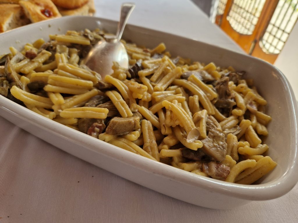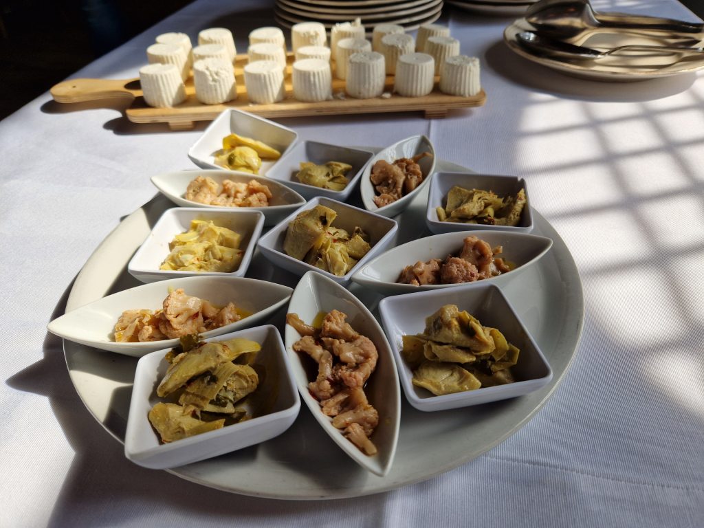 Sul discorso viticoltura, solo vitigni autoctoni ovvero Pallagrello Nero e Pallagrello Bianco, Aglianico, Piedirosso e Casavecchia. Cinque vini IGP attualmente in produzione, noi abbiamo assaggiato le anteprime delle prime annate. Brezza Piedirosso 2021 e Terra di Raff Pallagraello Nero 2020. Il secondo sicuramente più interessante e pronto, con un bel bagaglio di profumi di frutti rossi ed un corpo all’altezza. Il bianco è Donna Nicoletta Pallagrello Bianco 2020, di buona freschezza, sorso piacevole, ideale con aperitivi a base di formaggi freschi, ortaggi sottolio e piatti leggeri. Come le Casarecce con carciofi che, l’abbiamo scoperto mangiando, annunciano già il prossimo raccolto: quello dei Capuanelli, un carciofo dimenticato e recuperato dalla grande famiglia Giòsole. La primavera è arrivata, l’indirizzo è da mettere in agenda, anche con bambini e cagnolini al seguito.