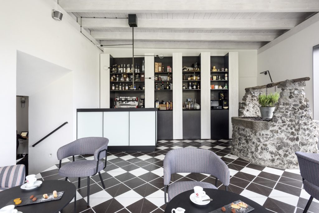 “Abbiamo scelto di preservare l’eleganza del complesso colonico di fine ‘800 con un lavoro di recupero che ci ha consentito di salvaguardare i volumi originali rispettando l’identità del luogo. In tutti gli spazi predominano la pietra vulcanica e il bianco, in perfetta sintonia con la natura e il verde circostante. Anche le sale interne e le suite sono un mix di passato e presente: volte in tufo, design minimal, colori tenui, tutto contribuisce a creare un continuo dialogo con il territorio e la sua storia.”