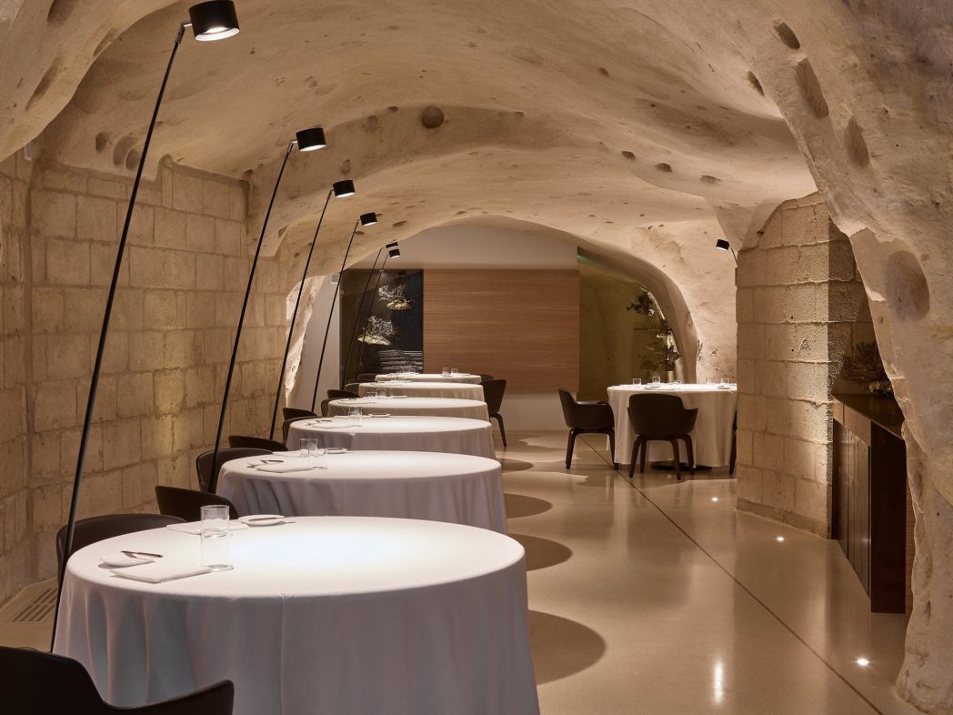 Tra i Sassi di Matera, all’interno di una grotta scavata nella roccia, Dedalo propone una cucina creativa, basata però sulle ricette della tradizione lucana. Tra gli antipasti possiamo trovare le Polpette con pane di Matera, gazpacho di pomodorini e anguria (10), gli Agnolotti di burrata con fonduta di datterini e rucola (14 euro), Orecchiette di grano arso con salsiccia pezzente e funghi cardoncelli (14) e il Filetto di podolica lardellato in sfoglia croccante con lardoncelli (24 euro).
