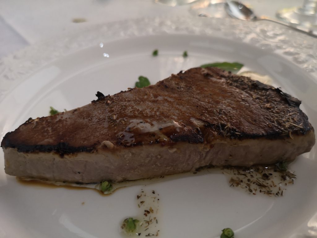 Se, poi, il palato degli onnivori è stato deliziato da un filetto di tonno rosso scottato agli agrumi e condito con olio al timo, quello dei vegetariani ( e anche di chi pur non essendolo ha voluto assaggiarlo) è stato allietato da un gustoso tortino di zucchine con scamorza affumicata in cui la dolcezza delle zucchine ha incontrato le note fumè del formaggio creando un unicum dal sapore armonico ed equilibrato.