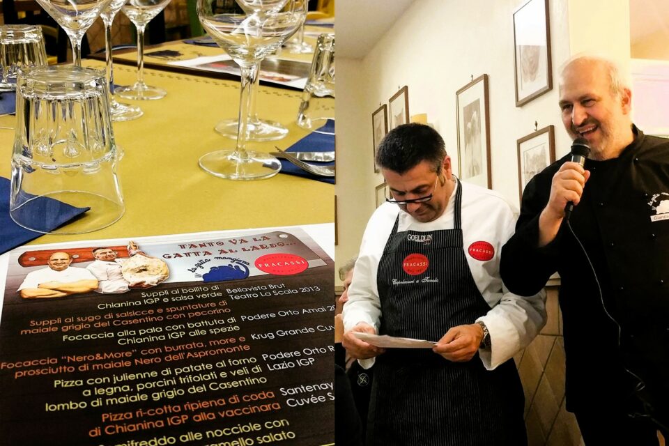 Centro della serata è l’incontro tra la carne straordinaria di Simone Fracassi e i suoi super salumi con i fitti e le pizze della Gatta.