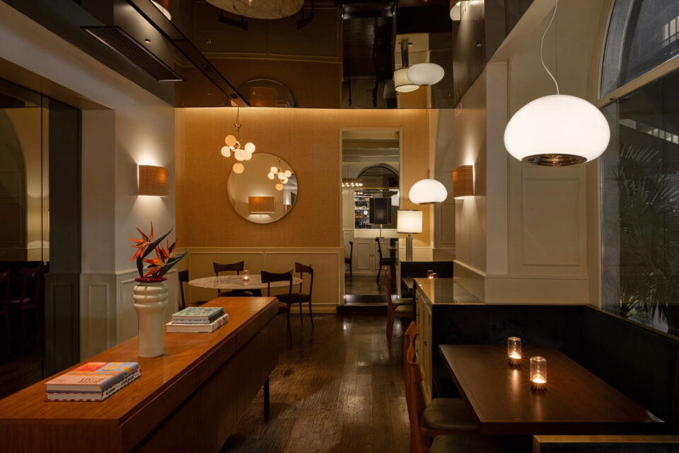 Lubna è un listening restaurant bar che combina cucina, mixology e musica in un’atmosfera unica, zona Fondazione Prada. Come estensione del celebre fratello maggiore Moebius, Lubna si distingue per la sua struttura semicircolare che si affaccia su una piazza e per un design che mescola eleganza industriale e raffinatezza contemporanea. Al centro dello spazio si trova un imponente bancone lungo 15 metri, che collega la cucina a vista, la postazione cocktail e un grande tavolo per gli ospiti. Uno degli elementi più sorprendenti è una parete di 15 metri nella sala principale, decorata con moduli girevoli sui quali vengono proiettati video immersivi. La cucina di Lubna è affidata allo chef stellato Enrico Croatti, che propone un menu ispirato alle sue radici romagnole e un’attenzione particolare all’uso del fuoco. Da provare il risotto affumicato con foie gras, dove la cremosità del risotto si sposa con le note intense dell’affumicatura, o il polpo alla brace accompagnato da una delicata crema di patate viola. La proposta mixology è curata da Giovanni Allario: i suoi cocktail uniscono ingredienti inediti e sapori ricercati, come il Negroni all’infusione di fieno.