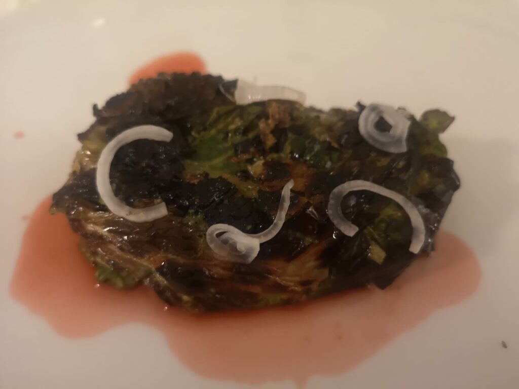 Millefoglie di insalata alla brace: un trionfo di creatività che coniuga il gusto semplice dell’iceberg con la tecnica della brace che conferisce a questo ortaggio una personalità ed un carattere davvero sorprendente ed inimmaginabile.