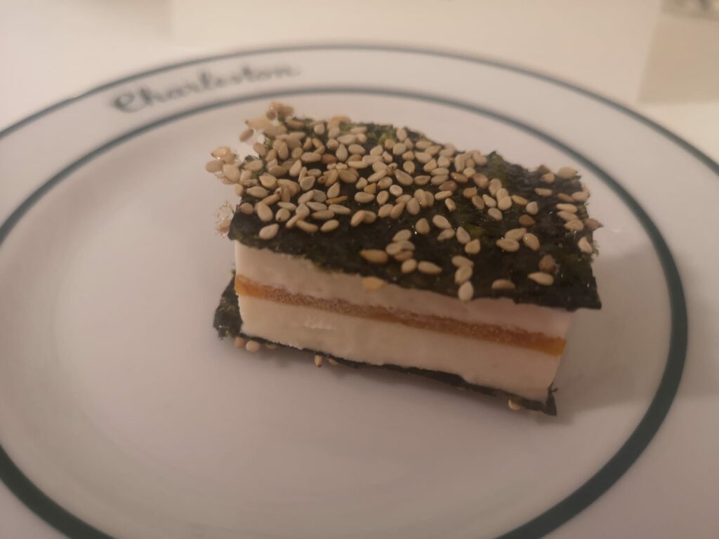 Il viaggio sensoriale al Charleston inizia dal pane. A cominciare da quello sfogliato, una soffice brioche sfogliata calda con doppia piega classica. L’impasto è di origine francese ricorda un croissant, con un fior di sale presente sul cappello. Anche i craker meritano una particolare menzione per il loro impasto che ricorda una chiacchiera salata, all’aroma del pepe nero e olio di oliva che profuma di Sicilia e Mediterraneo. Fino a quello che profuma di lievito madre con 3 soli ingredienti: farina di Tumminia del mugnaio Filippo Drago, acqua e miele di rovo dell’apicultore Carlo Amodeo. La lievitazione avviene a temperatura controllata per 20 ore: 8 di lievitazione e 12 di maturazione.