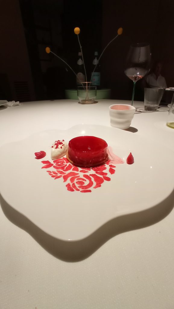 Arriva il predessert ed è un omaggio colto (e goloso) al Cimitero delle Fontanelle, l’ossario simbolo della devozione/superstizione dei napoletani verso i defunti. Quindi un teschio che letteralmente si scioglie in bocca. Il dessert previsto dal menu è “Non chiamatela delizia”, omaggio al famosissimo dolce al limone della Costiera. Qui proposto con meringa, sorbetto e cremoso al limone, spuma di limoncello, biscotto all’olio extravergine di oliva.