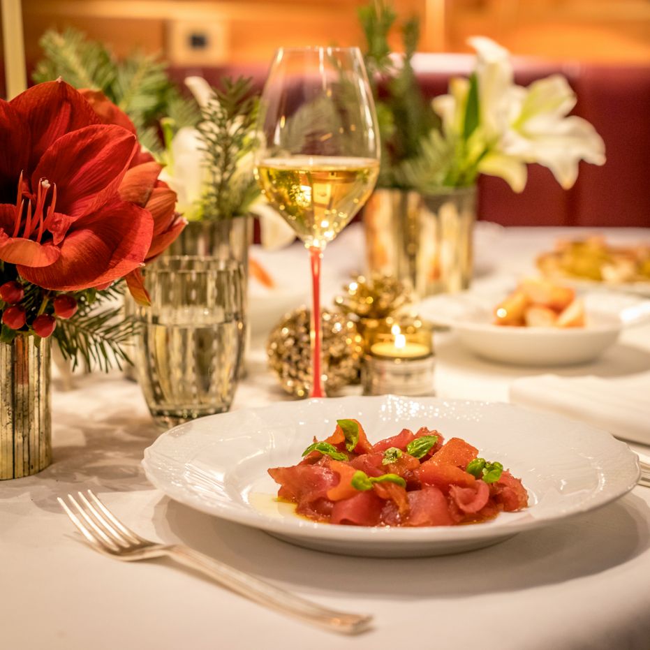 Per l’ora di cena (100 euro a persona) secondo le regole vigenti, la sera della Vigilia ci si fermerà a dormire secondo una proposta di STAYcation Aspettiamo insieme il Natale che prevede uno sconto del 15% sul prezzo della camera con la Cena della Vigilia (90 euro a persona) di 4 portate più il dessert. Il pranzo di Natale sarà invece molto gioioso ricco di passione, sapori, sorprese realizzate dallo chef Gabriele Muro.