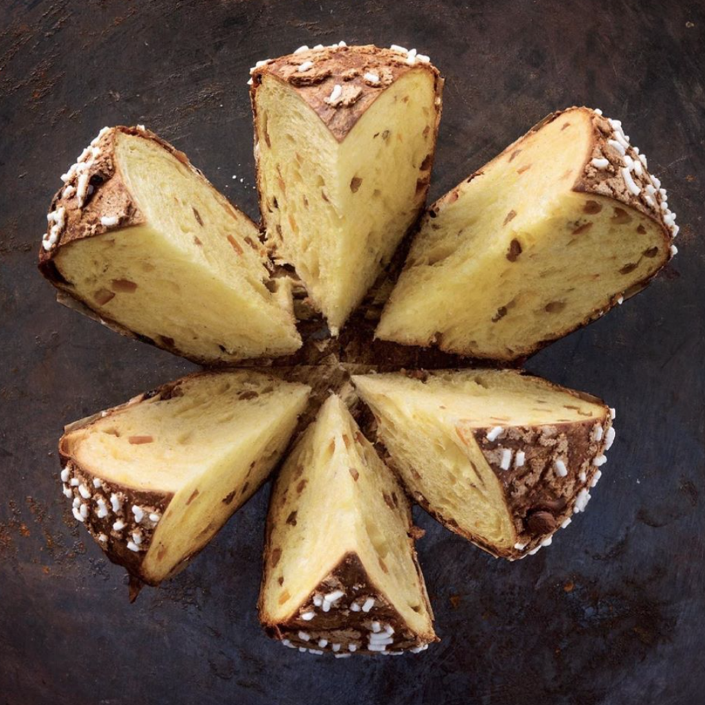 Il Panmilanese è il classico, quello dell’antica ricetta milanese, ma troverete anche il Pandarino, con mandarini canditi e copertura al cioccolato bianco e il particolarissimo Pansfogliatella Santa Rosa, grande lievitato arricchito con il ripieno della sfogliatella napoletana, a base di gemme di ricotta di vaccino, semola, arancia candita con tocco di cannella di Ceylon e un ripieno di ganache al gusto di crema pasticcera e amarene candite con infuso alla vaniglia.