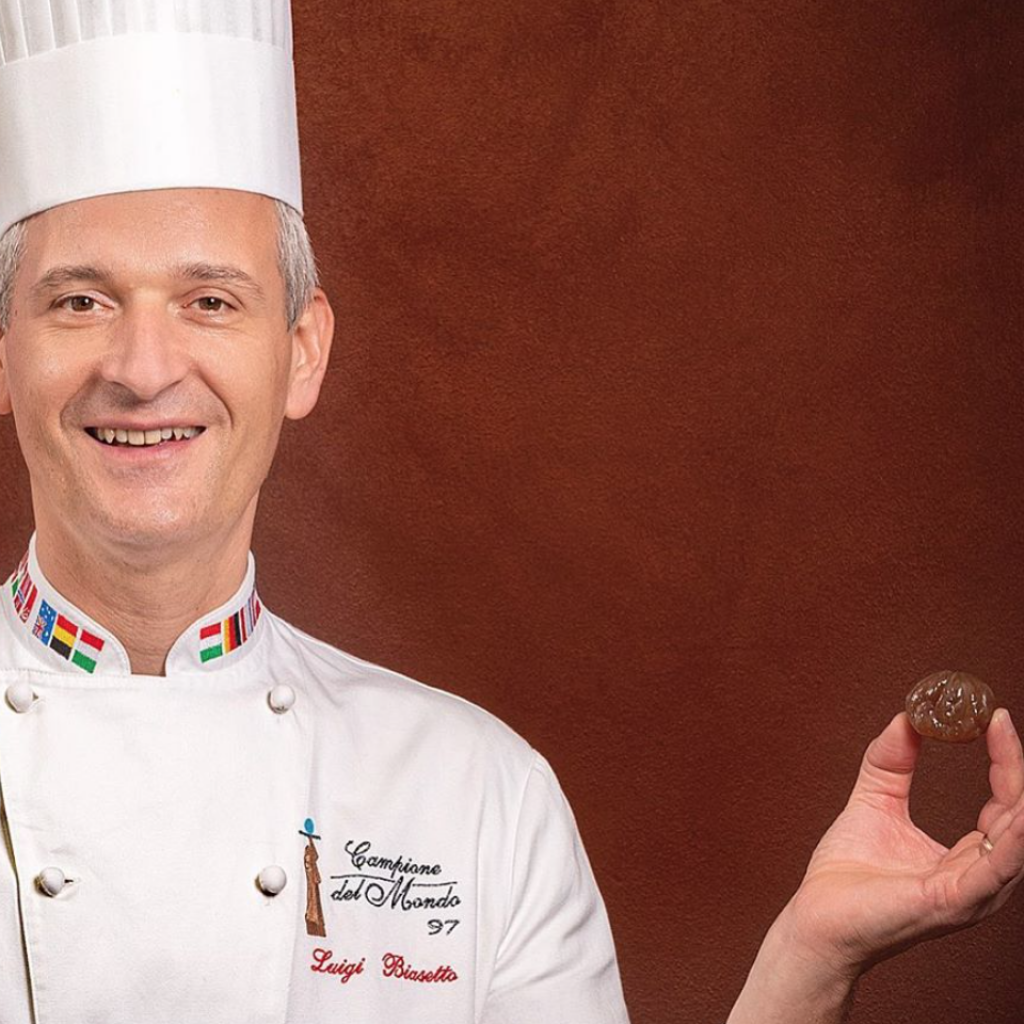 Campione del Mondo di Pasticceria, Luigi Biasetto è un altro grande della nostra arte pasticcera. Il panettone di Luigi Biasetto è arricchito da scorzette di arancia di Calabria candita a bassa temperatura, per evitare la perdita di olii essenziali preziosi e mantenere la morbidezza della polpa dell’arancia, uva sultanina, miele d’acacia di Toscana.