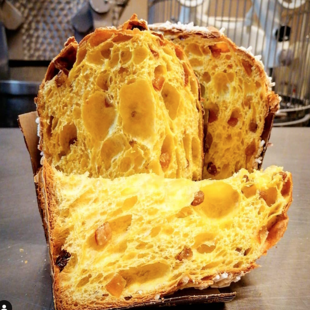 Una pasta è consistente e dolce, perfettamente lievitata e profumata, una glassa spessa e ricca di mandorle croccanti. Originario di Prato, è il Vice presidente dell’Associazione Maestri Pasticcieri Italiani, Paolo Sacchetti, insieme al figlio Andrea, crea uno dei panettoni più buoni d’Italia. Oltre al panettone classico, troverete la versione più con zenzero, albicocche e amarene.
