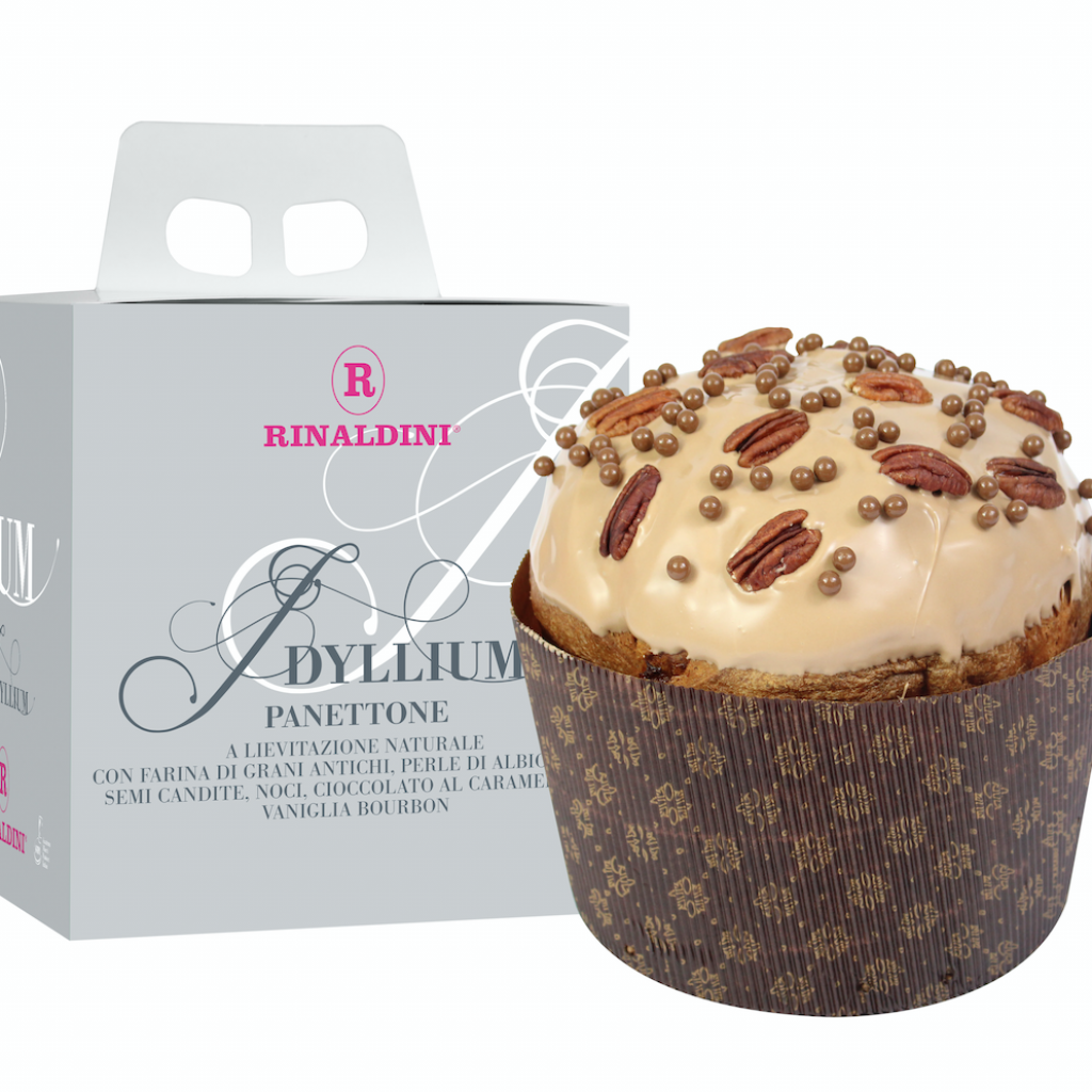 Una lenta lievitazione naturale e il rispetto delle complesse sequenze della lavorazione tradizionale, insieme a una maniacale selezione delle materie prime più pregiate, costituiscono il segreto dei panettoni sfornati, freschissimi, dal laboratorio Rinaldini. Il Panettone del Natale 2020 che si chiama Idyllium. “Il nome vuol dire armonia e serenità. Ne abbiamo tanto bisogno in questo periodo.È composto da una farina di grani antichi, perle di albicocca, noci pecan e un cioccolato al caramello leggermente salato come copertura e glassa.Ovviamente a lievitazione naturale, una lunga lievitazione di più di 72 ore che fa sì che questo Panettone sia estremamente leggero e molto soffice” spiega il Maestro Rinaldini.