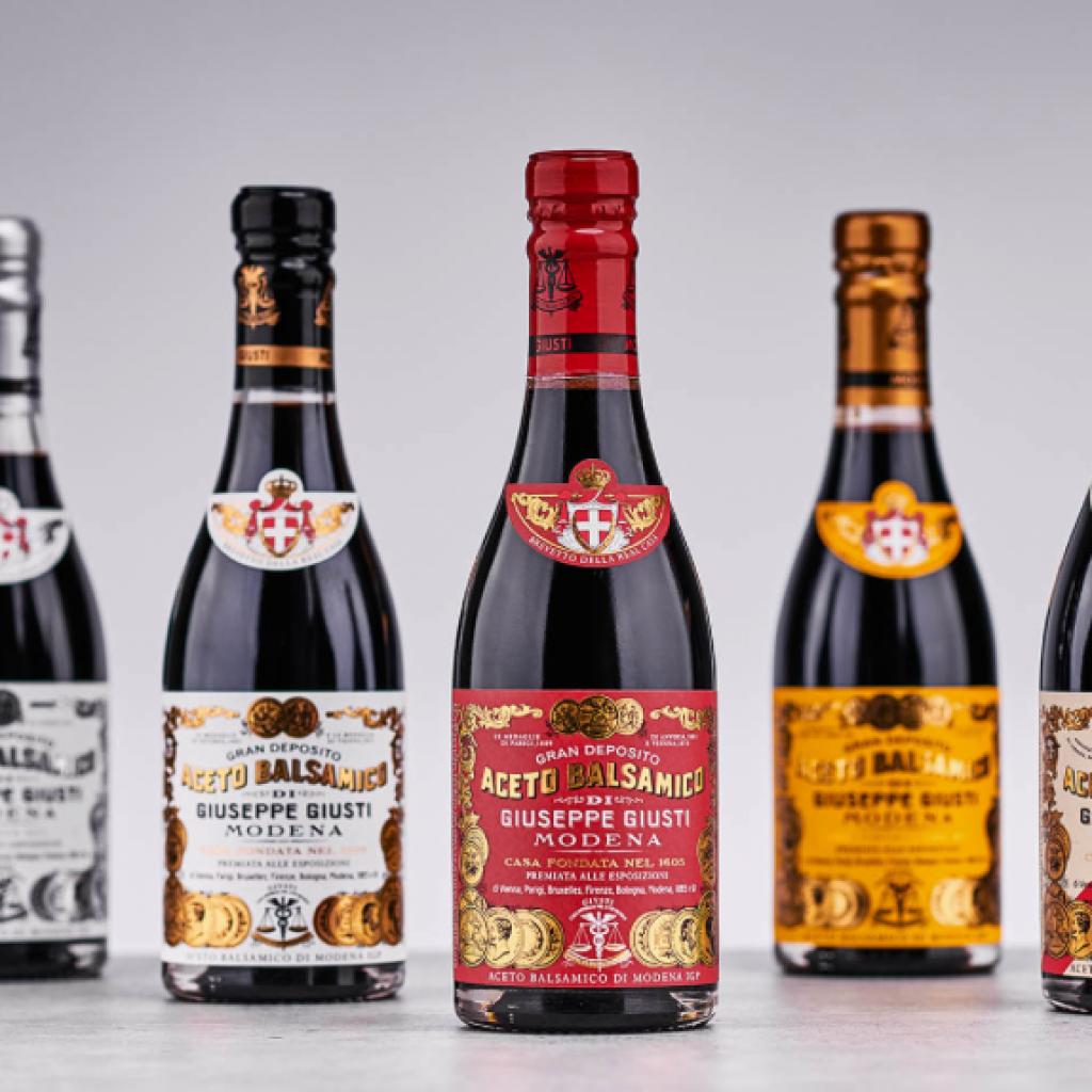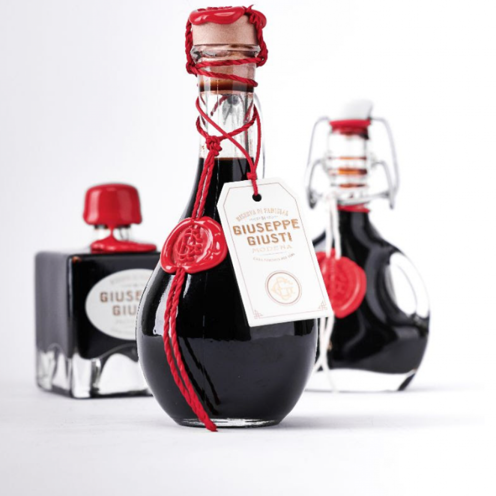 Una serie di condimenti dolci, delicati e di grande densità, vengono dall’usanza, presente in Giusti come in tante altre famiglie modenesi, di imbottigliare a mano con corda e ceralacca in piccoli boccettini di vetro il balsamico prodotto in casa, per donarlo alle persone più care.