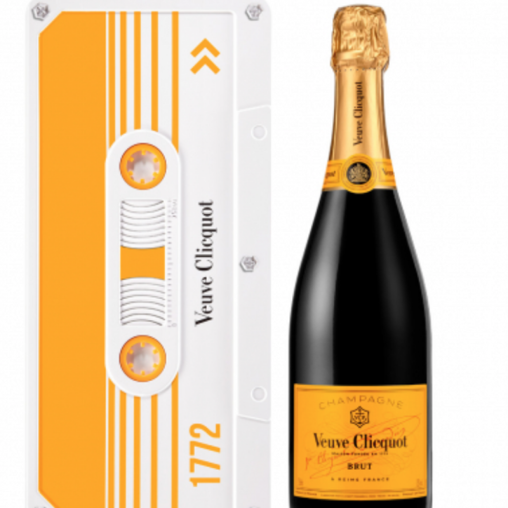 Veuve Clicquot ha riservato particolare attenzione a ogni dettaglio di design, dalle minuscole viti che riprendono la forma della cometa simbolo della Maison, fino alle rotelline delle bobine che girano, proprio come in una vera musicassetta.