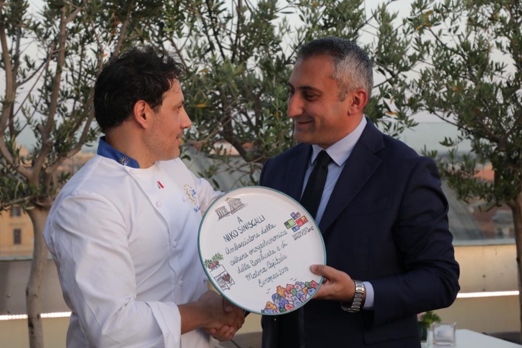 “Eclettico, innovativo, sorprendente. Lo chef Niko Sinisgalli – ha detto il presidente della Provincia di Matera, Piero Marrese, in accordo con la Fondazione Matera-Basilicata 2019, nel corso della cerimonia presentata da Francesca Brienza – è l’interprete chiave dell’exploit che sta interessando la nostra regione, rimasta isolata per anni e ora aperta al mondo. La sua, in particolare, è una storia che parte dalle prime ricette ideate nell’osteria di famiglia per arrivare a creazioni degne di un artista, che lo hanno portato sul tetto di Roma e non solo. Il tutto seguendo sempre un duplice obiettivo, vale a dire quello di portare al top il suo modo di fare cucina e di imporre i suoi piatti come autentica espressione delle proprie radici. Una valorizzazione del territorio d’origine, che rappresenta il dogma stesso della Basilicata, che sta facendo scoprire a tutti le sue meraviglie attraverso un lavoro portato avanti da tempo e coronato dalla nomina di Matera a Capitale Europea della Cultura 2019. La crescita di una regione come la nostra passa quindi da persone come Niko, che incarna esattamente la nostra filosofia, vale a dire quella di aprirsi al mondo. E’ anche grazie a lui se oggi la Basilicata è diventata una realtà”.