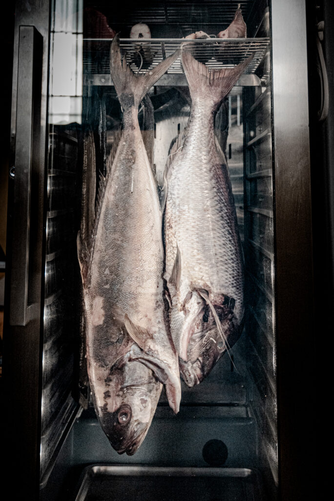Accanto a piatti spigolosi come il bun, Noah Fish propone salumi di mare: tra questi il celebre “pata negra” di tonno, stagionato come un grande prosciutto iberico. Le fette sottili sprigionano aromi complessi, con note di umami, mare e leggero affumicato.