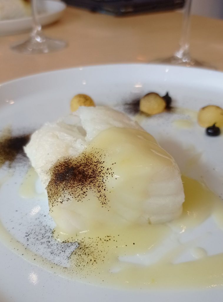 Si parte con il Carpaccio di baccalà e chips realizzate con la sua stessa pelle. E l’asticella va già su, altissima. Baccalà crudo, scioglievole, corredato dagli stessi elementi suggeriti dalla tradizione: olive, acciughe, pomodori secchi, olio e limone.