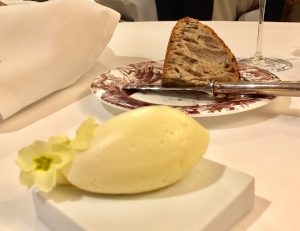 Pane con lievito madre farina locale integrale e selezione di semi servito tiepido con Burro valdostano più cremoso e salato su richiesta dello chef