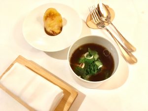 Il filo conduttore sono le acidità e le marinature, che sgrassano la concretezza dei piatti e lasciano la voglia di continuare col boccone successivo. Da rivedere le eccessive sapidità e l’abbinamento con i sakè, destinati a un palato un po’ troppo evoluto.