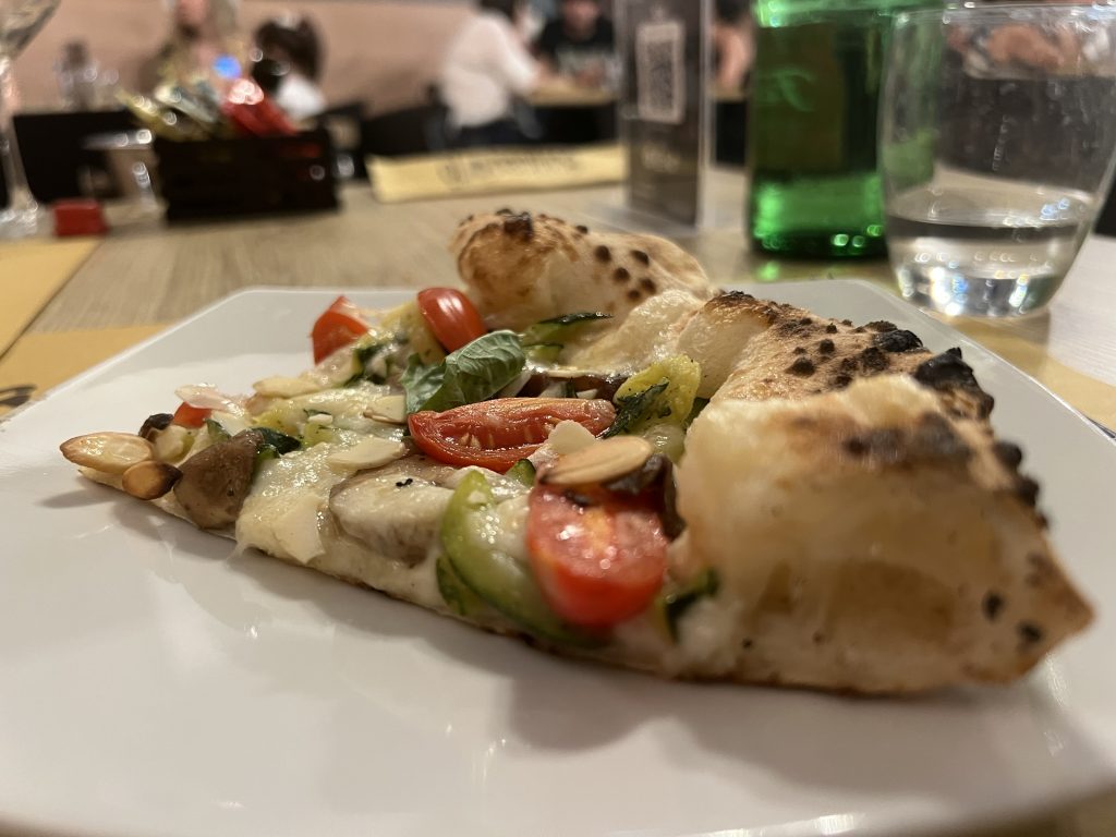 Costantemente impegnato in un’opera di ricerca per valorizzare l’importante legame tra gusto e salubrità della pizza, buona per il palato e per la salute, Giacomo ha cercato di dare un’anima a ingredienti salutari ma a volte un po’ noiosi. Ne è un esempio Orto, olio e Basilico con verdure spadellate e non fritte e aggiunta di mandorle in uscita.