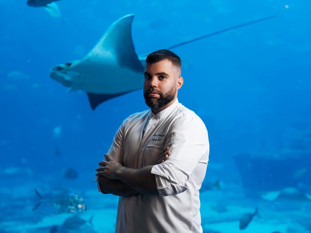 Scendere dieci metri sotto il livello del mare per andare a cena non è qualcosa che si dimentica facilmente. Da Ossiano, il ristorante una stella Michelin incastonato nel cuore di Atlantis, The Palm, a Dubai,  l’esperienza comincia ancora prima di sedersi a tavola: una lenta discesa in una sala sotterranea affacciata su uno degli acquari più grandi al mondo, dove oltre 65.000 creature marine scivolano silenziose davanti alle vetrate. Razze, squali e banchi di pesci tropicali diventano parte della scenografia, trasformando ogni portata in un piccolo atto teatrale.