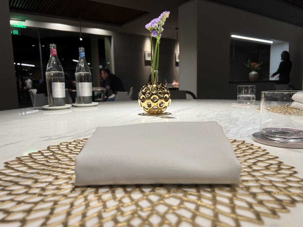 L’ambiente di Osteria Arbustico è elegante, senza eccessi, con un’atmosfera tranquilla e cura dei dettagli. I tavoli sono nudi e distanziati, la mise en place ricercata, comode le sedie. Innovativo il tavolo conviviale che può ospitare fino a 8 commensali. Il personale di sala è giovane ma si avverte la mancanza del fratello Tomas, che ha intrapreso oramai da due anni un nuovo percorso ristorativo.