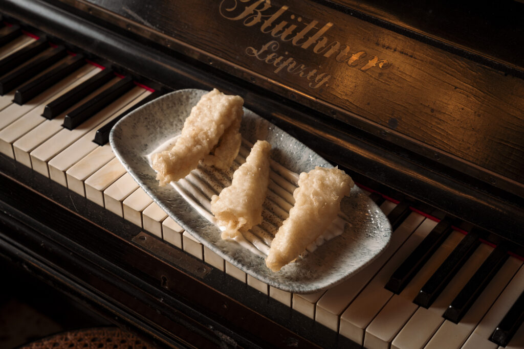 Merita una menzione anche l’offerta vegetariana e vegana: Tempure leggere, sughi ricavati dagli scarti essiccati, verdure trattate con la stessa cura del pesce. Come dice lo chef: “una zucchina, se rispettata, può emozionare quanto il baccalà”.