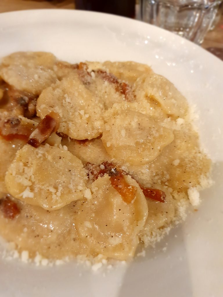 E tra i primi? Spazio ovviamente all’Amatriciana, regina indiscussa della cucina, ma anche alla Carbonara e alla Gricia, che noi abbiamo provato in via del tutto eccezionale con gli gnocchi ricci di Amatrice.