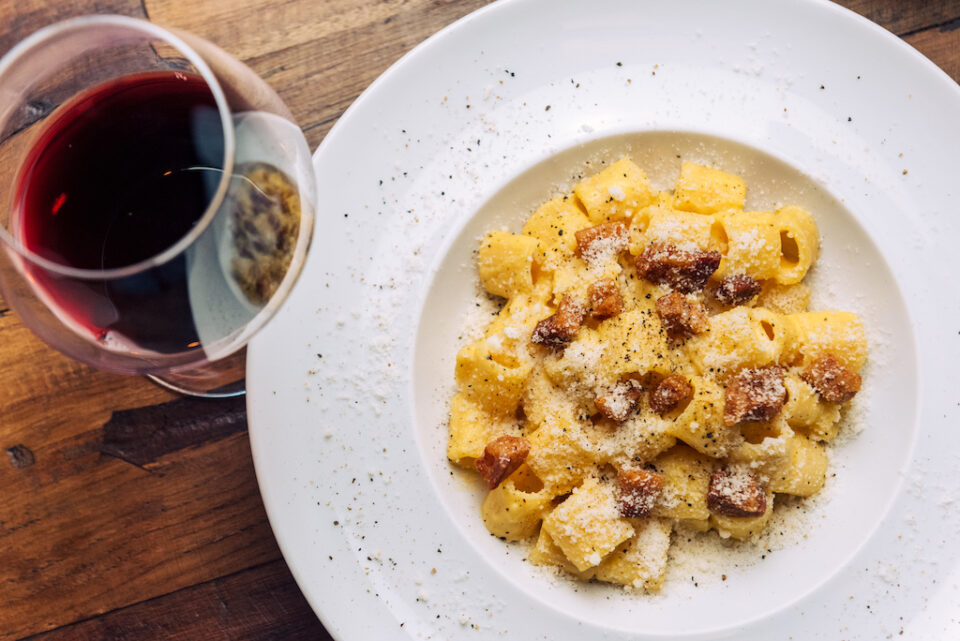 Con la lungimiranza di chi punta al fine dining senza abbandonare i sapori della tradizione, Carlo Maddalena, già patron di Giulia Restaurant, ha recentemente realizzato un suo grande sogno: creare un palazzetto del gusto nel cuore di Roma. Ecco dunque che all’interno di Palazzo Piacentini, in Lungotevere dei Tebaldi 4a, ha inaugurato Osteria Giulia, uno spazio di convivialità e cucina confortevole dove ritrovare i sapori di una volta alleggeriti grazie a tecniche moderne e all’estrema sensibilità dello chef Riccardo Bernabei. La tradizione romana e mediterranea la fanno da padrone in un menu (disponibile alla carta o in percorso degustazione) che spazia dal risotto alla milanese alla genovese campana o alla norma siciliana passando per la carbonara capitolina.