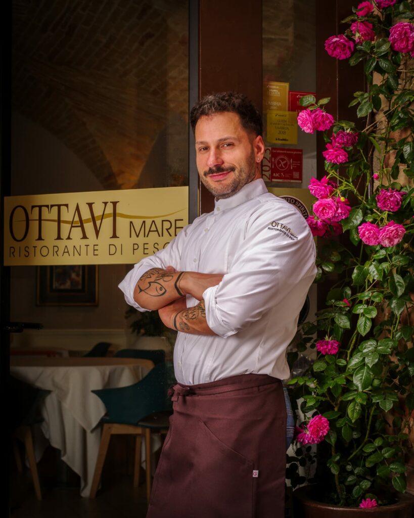 Vittorio Ottavi non solo è un figlio d’arte e d’esperienza, cresciuto nel mondo della ristorazione, ma è un cuoco capace di fornire una prospettiva chiara e coerente della sua cucina di mare. Il ristorante Ottavimare, nel centro del piccolo borgo di Bevagna, rappresenta un riferimento in fatto di pesce e lo è diventato con maggiore solidità, dal 2014, quando, intrapresa la propria strada, il padrone di casa decide di continuare l’attività di famiglia, aprendo un piccolo locale vocato alla cucina di mare.