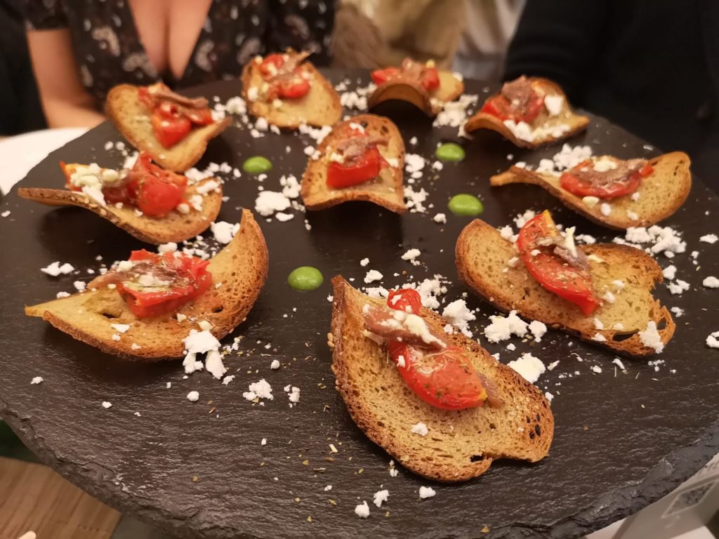 Rimessa Dragotto ha pensato a un piccolo menù degustazione per raccontare la cucina degli olivicoltori in un percorso ma molte delle proposte sono disponibili anche alla carta. Protagonisti sono ingredienti e piatti semplici come il tipico pane cunzato di Castelvetrano, il territorio dove crescono gli ulivi della famiglia Dragotto, che diventa una sfoglia croccante e leggerissima, con pomodoro Piccadilly cotto a bassa temperatura, polvere di olio Viridior e alici del Cantabrico.