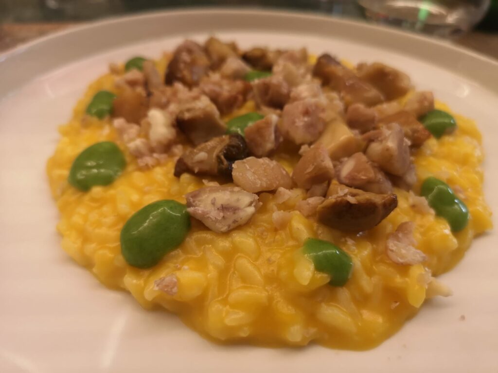 E ancora “Erbe amare a mare” dove le erbe spontanee amaricanti, come le tipiche brassicacee siciliane in foglia, incontrano la sapidità della vongola e una delicata crema all’aglio nero che sa valorizzare la perfetta mantecatura e la tecnica di cottura del riso che lo chef Giovanni Federico, palermitano di nascita ma formatosi professionalmente nel Nord Italia, ha affinato durante la sua lunga permanenza a Livigno.