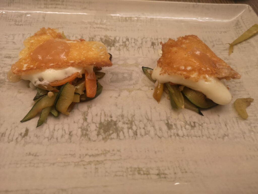 Oppure “come un uovo a frittedda”, vero e proprio signature dish del ristorante. Si tratta di uovo biologico cotto a bassa temperatura, panato e fritto per farsi avvolgere da un gustoso macco di fave e incontrare la croccantezza del porro stufato e fritto. Un piatto che esprime perfettamente l’autenticità dei sapori di campagna esaltati dalla mano di un giovane chef che riesce a innovare gli ingredienti attraverso tecniche contemporanee ma rispettose della materia prima.