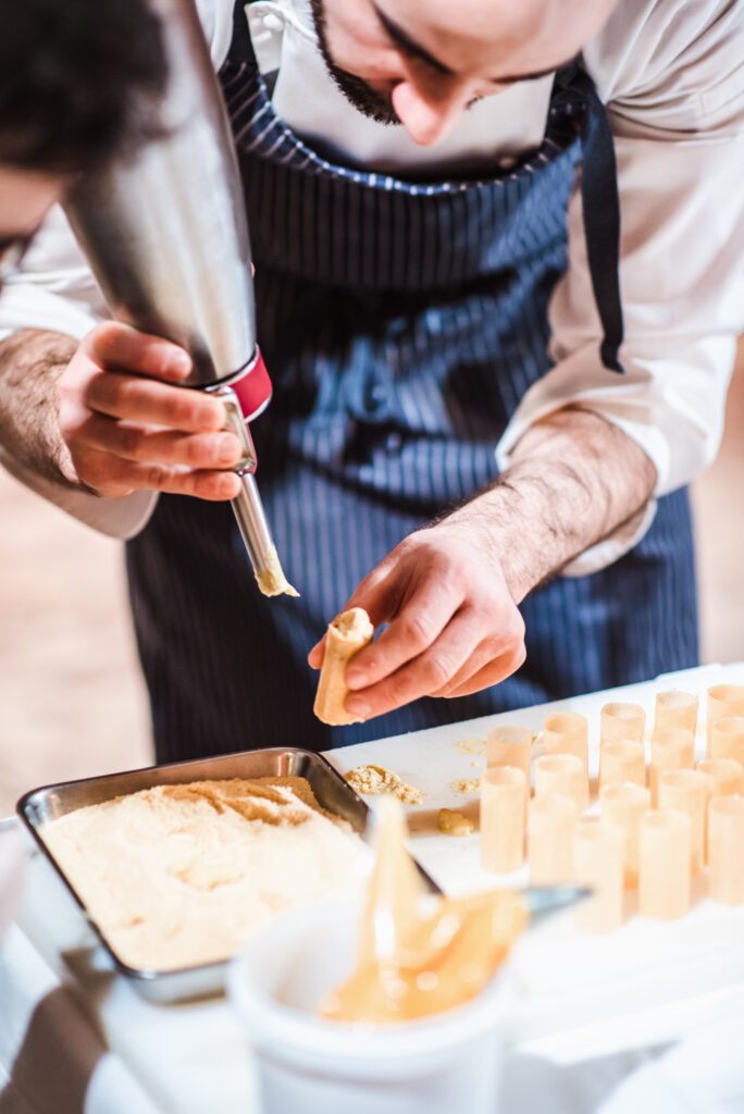 Ad esibirsi sono stati Francesco De Padova, pastry chef del ristorante Santa Elisabetta di Firenze (2 stelle Michelin), che ha preparato una sua rivisitazione del panettone al cioccolato; Ferdinando De Simone, Pastry chef dell’hotel-ristorante Lorelei di Sorrento (1 stella Michelin), che ha proposto il suo “panettone perdu” d’ispirazione francese; Giovanni Fedeli, pastry chef del ristorante-resort La Madernassa di Guarene, Cuneo (1 stella Michelin), con la sua “inedita croccantezza” e Stefano Ferrara, il maestro gelatiere che, insieme al latte artist Fabiano Bucci, hanno proposto un gelato di lievito madre in abbinamento al cocktail “Xmas Punch” a base di latte e panna.