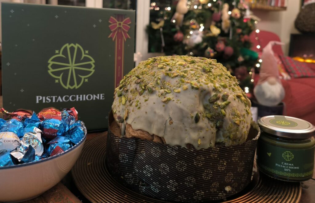 Un pane dolce ideale da mangiare a fine pasto ma anche anche a colazione o da regalare per stupire con gusto e raffinatezza, viene proposto insieme ad un barattolo di Crema Pistacchione al 50% di pistacchi, che rende ogni fetta irresistibile. La morbidezza dell’impasto si unisce a una golosa copertura, creando un’esperienza di gusto unica. Per i più golosi esiste anche il Panettone Sbagliato, ricoperto con una golosa glassa metà al pistacchio e metà al cioccolato con pistacchi interi e nocciole e farcito all’interno con gocce di cioccolato e pistacchio.