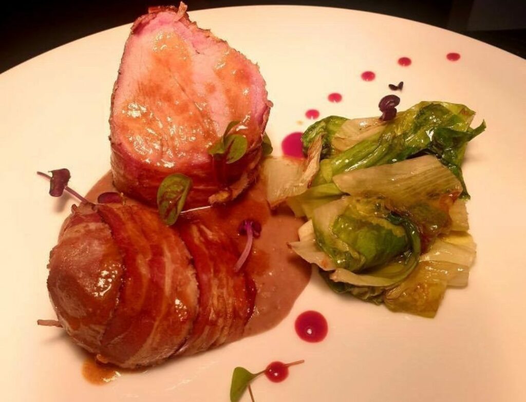 E tra i secondi, sua maestà il maialino lardellato con crema di borlotti e salsa ai lamponi o la duchessa di faraona ripiena di parmigiano reggiano e prosciutto di Parma con senape selvatica.