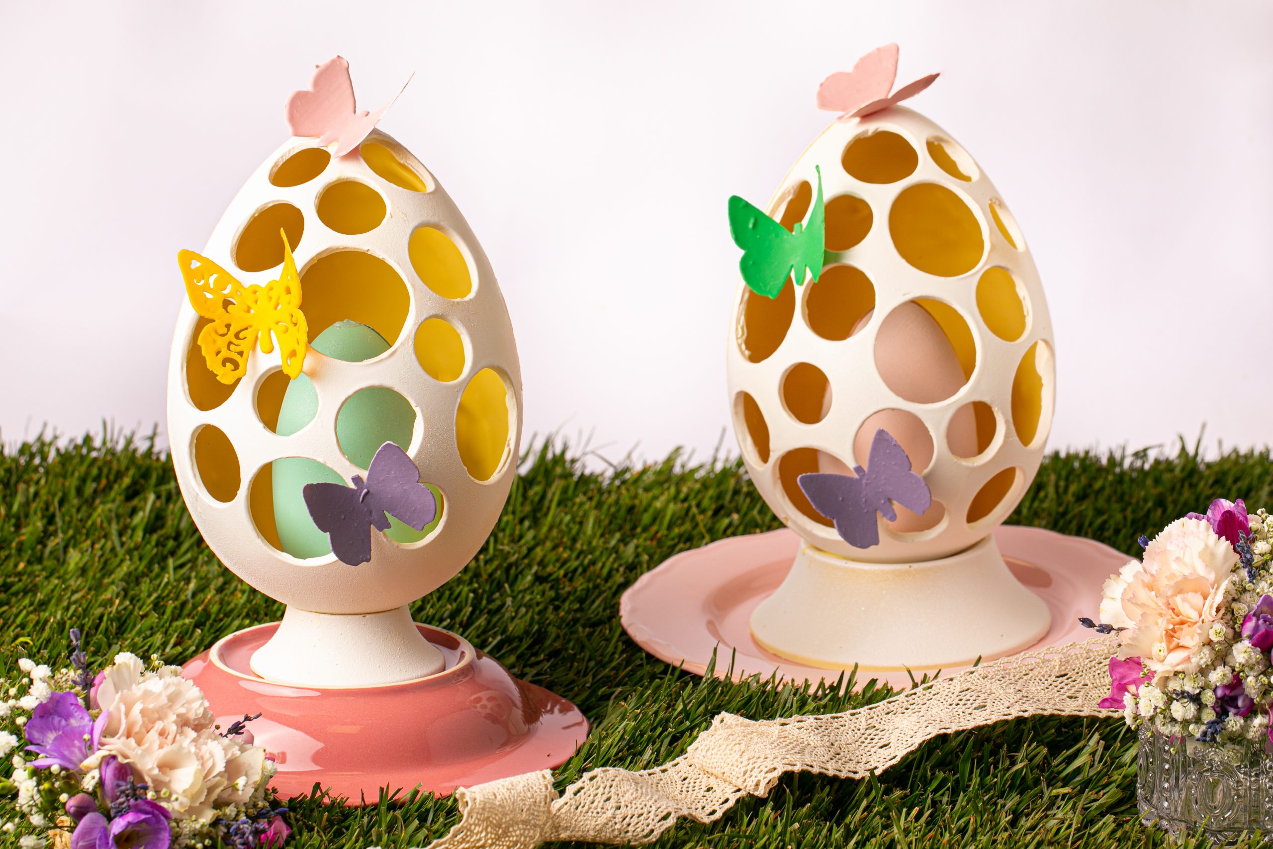 Richiama sempre la natura l’Uovo forato al cioccolato bianco con all’interno un uovo colorato di rosa o di celeste. A decorazione, si adagiano sopra delle farfalle di cioccolato dalle tinte pastello, tipiche della primavera. Altra novità della Pasqua 2022 di Divino è la collaborazione con un orafo di Aprilia, la gioielleria Oro Capital, che ha permesso di creare un Uovo-gioiello dal colore nero con delle sfumature dorate. Il cioccolato usato è fondente e al suo interno racchiude un bijoux prezioso come sorpresa.