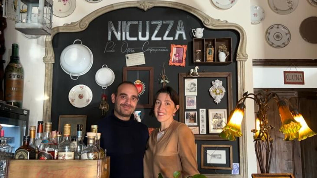 Roberto Albanese e la moglie Mattia Cozzo, lui avvocato e lei architetta, entrambi nati e cresciuti a Palermo hanno deciso non solo di cambiare professione ma di cambiare totalmente vita. Dal capoluogo siciliano si trasferiscono a Petralia Sottana dove aprono Nicuzza Piccola Osteria Contemporanea, recuperando l’antico concetto di “casa e putìa” (casa e bottega). Qui fanno una cucina di territorio con un menu diverso tutte le settimane.