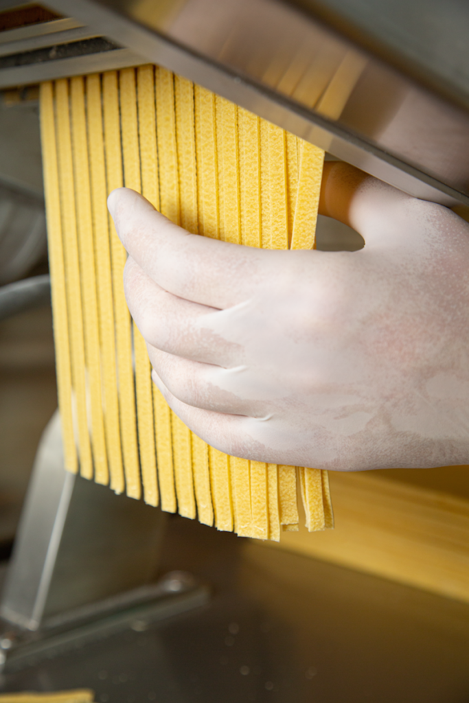 Penso che ciò che rende davvero uniche le realtà artigianali siano le persone, chi ci lavora dentro e chi trasmette qualità nella propria proposta. Detto questo, parlando prettamente del prodotto, possiamo dire che siamo riusciti a dar vita a una sintesi della pasta trafilata a bronzo, caratteristica non molto comune nella pasta fresca, ma che permette di ottenere un prodotto estremamente ruvido e dall’ottima consistenza e resa in cottura. La trafila aiuta a creare una maglia glutinica solida, cosa complessa da raggiungere con la lavorazione a mattarello, oltre ad una fase di rilascio di amido in pentola che trova difficilmente eguali.