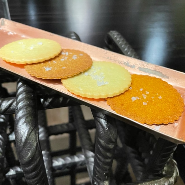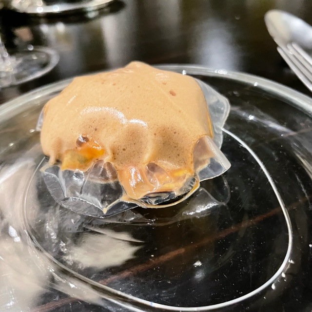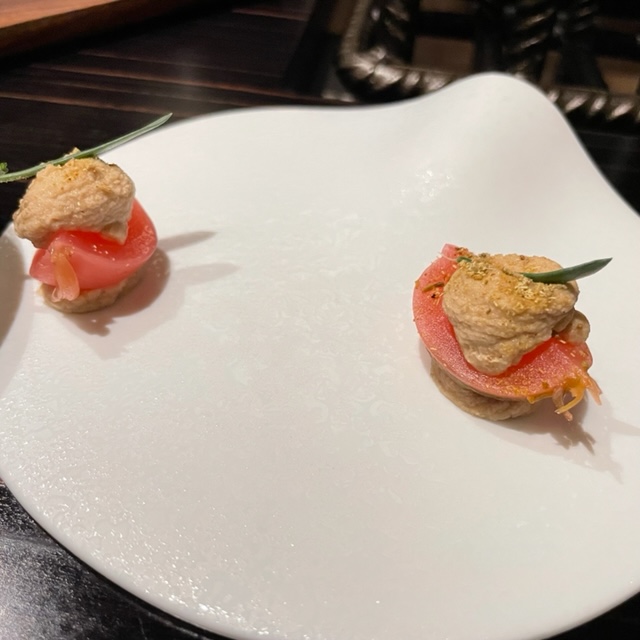 E ancora: Funghi, foie gres e mirtilli; il Fritto, Ricciola, Glassa Sud-Orientale e Misticanza. Una passeggiata in Sicilia come predessert, con la Granita di Mandarino, Zabaione e Brioche col Tuppo e un tuffo nel cioccolato e caramello in chiusura. Il tutto pasteggiato con un Aligotè dalla Borgogna del 2019.