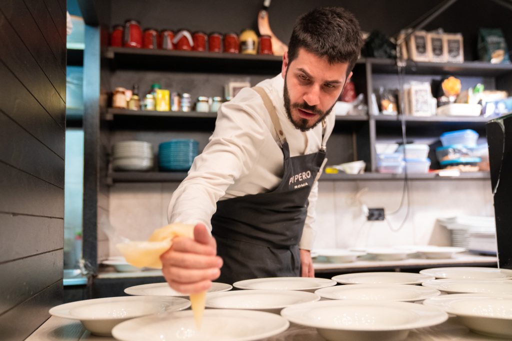 Varchi la porta del ristorante Pipero e in un batter d’occhio respiri l’aria del salotto di casa. Lo stellato di Corso Vittorio Emanuele II, a Roma, a un passo dal Vaticano, vanta una speciale magia: l’accoglienza calorosa che avvolge come in un abbraccio già dai primissimi minuti. Merito di un ambiente caldo ed elegante, avvolgente, rassicurante. E di un patron che conquista proprio tutti con un sorriso un po’ burlone e la battuta sempre calzante nella manica.