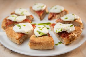 Per Massimo Giovannini – patròn della pizzeria Apogeo a Pietrasanta, vincitrice del premio come Miglior Pizza Regionale e 22esima nella top 100 d’Italia – la pizza in sé è solo uno degli aspetti della proposta gastronomica. Nel menù accanto alle “Origini” (le classiche, appena rivisitate) e alle pizze “In condivisione” (che mostrano fin dove si è spinto con la ricerca gourmet), il pizzaiolo ha ritagliato uno spazio per “Oltrelapizza”, dedicato a focacce, sandwich e lievitati.