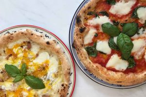 Fragranti pizze napoletane da assaporare su ampi tavoli di legno e servite su colorati piatti di ceramica decorati a mano, immersi in un ambiente tipico del Sud, con scaffali colmi di attrezzi da cucina, barattoli e provviste e pavimenti decorati a mano. Un luogo ideale dove ognuno può sentirsi come a casa propria, dalle famiglie con figli, ai colleghi di lavoro, dai turisti alla ricerca della vera pizza napoletana, fino alle stilose food blogger, pronte a postare queste fumanti pizze, che rubano gli occhi per la freschezza e la qualità degli ingredienti.