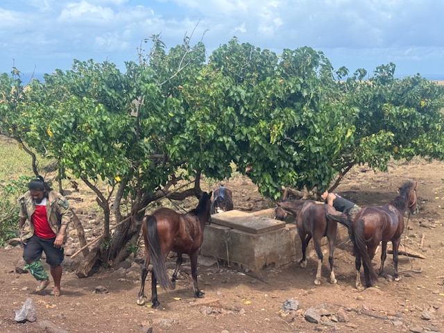 L’esplorazione riprende verso la banchina per tornare a bordo dell’Aranui, dove incantano le insolite scene di vita quotidiana che fanno compagnia curva dopo curva. Su tutte, le distese di noci di cocco lasciate a essiccare per ricavarne la preziosa copra e gli abbeveratoi dove i cavalli fanno il bagnetto, per essere pronti e perfetti, da impeccabili padroni di casa, per delle piacevoli passeggiate da offrire ai forestieri che arrivano da lontano.