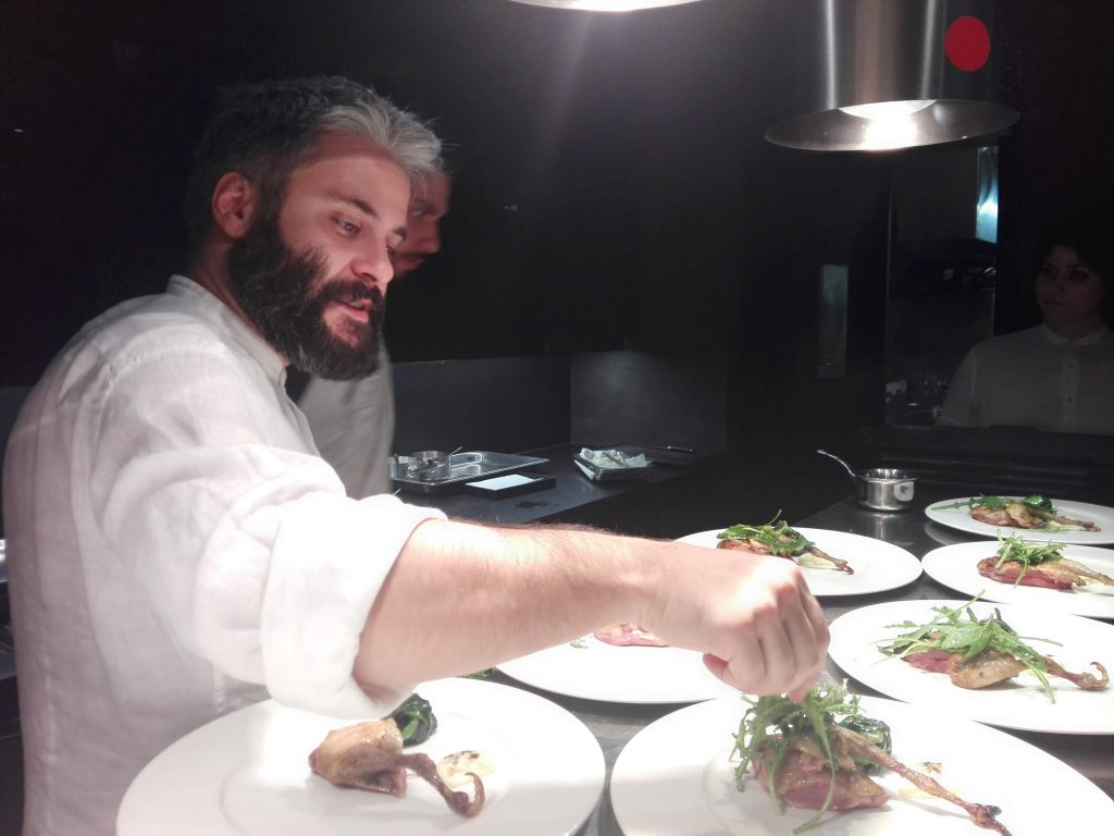 Dopo l’aperitivo siamo stati finalmente invitati ad accomodarci ai grandi tavoli sociali di Retrobottega, per fare la conoscenza con Quintorè in abbinamento coi piatti del menù studiato ad hoc dagli chef Alessandro Miocchi e Giuseppe Lo Iudice (qui la nostra intervista in occasione di Identità Golose).