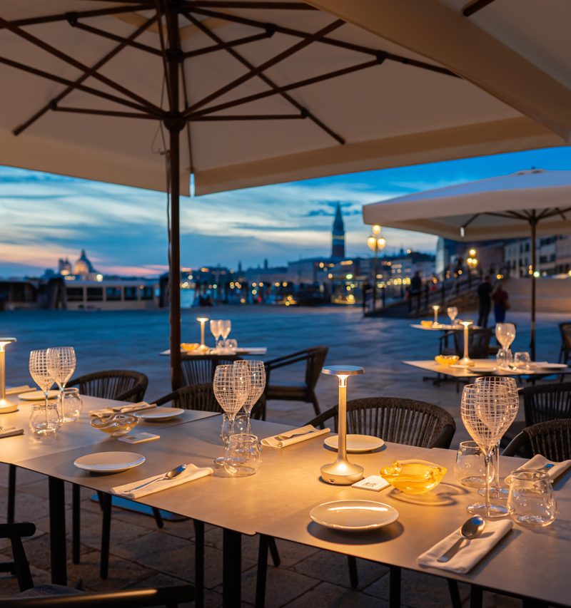 Tuttavia, ciò che a noi interessa di più in questo momento è offrire ai nostri ospiti un’esperienza, una passeggiata con noi in Veneto. Il tutto usando i nostri prodotti, i nostri piatti tipici, i nostri vini, le nostre esperienze e trasmettendo le nostre emozioni. Il nostro saper fare è presente in tavola anche nella scelta dei bicchieri realizzati con vetro di Murano”.