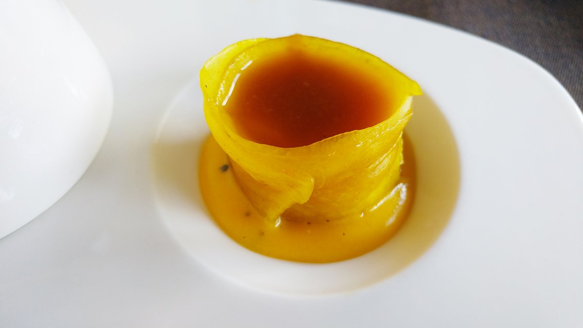 C’è anche un’altra simbologia nel piatto: l’oro è il simbolo del sole e della luce che genera la vita. Il piatto, che gioca su questo colore e sulle forme circolari, vuole richiamare i grandi Gong di onice che arredano il locale. Il richiamo è anche al sole dell’Oriente, luminoso e dorato come lo zafferano, da sempre spezia preziosa simbolo della cucina milanese.
