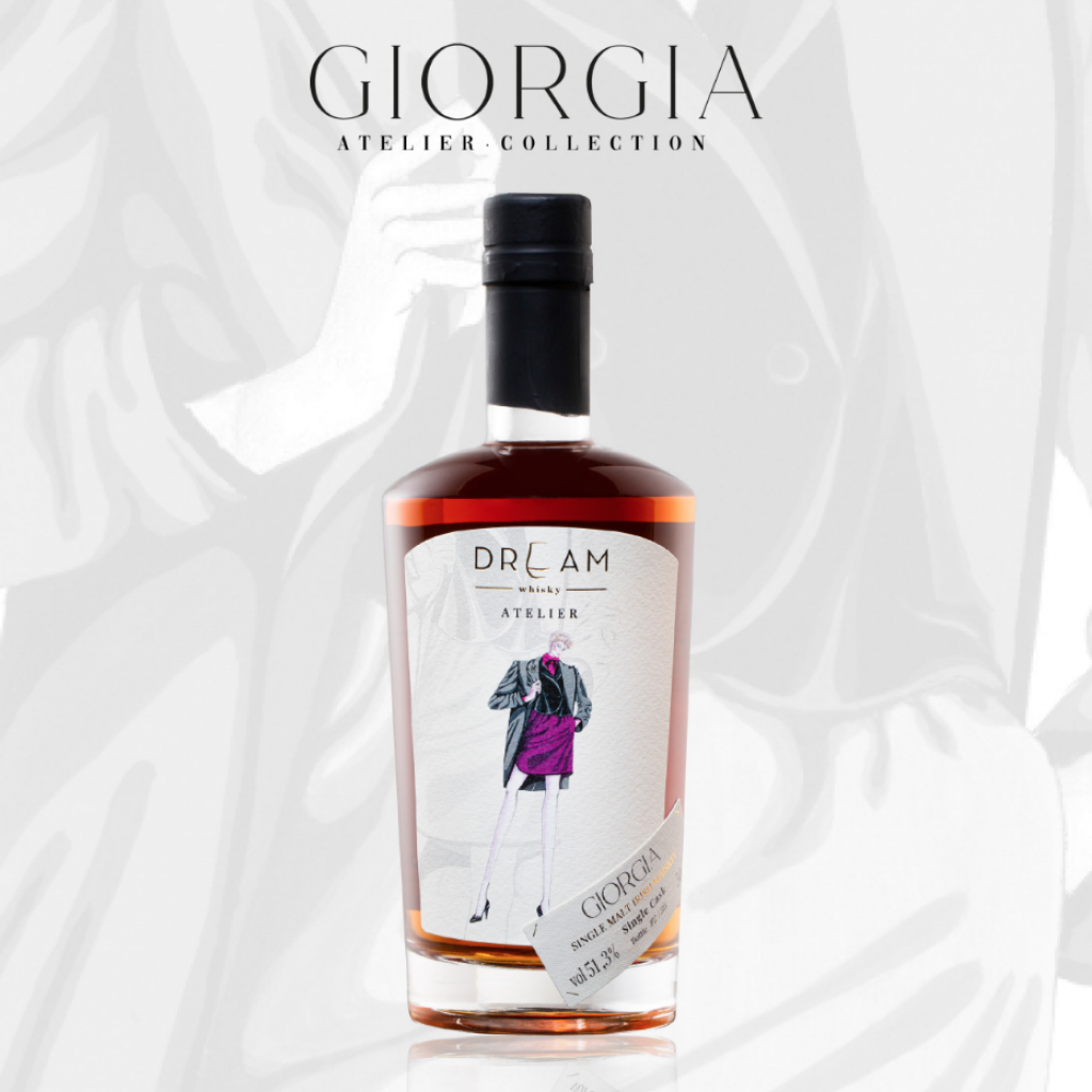 Tre sono le etichette che compongono la collezione “Atelier”, ispirata a tre modelli di eleganza femminile. A ciascuna di esse, Federico Mazzieri e Marco Maltagliati – imbottigliatori indipendenti e soci fondatori di Dream Whisky – hanno dato un nome di donna. Dafne è l’irriverente e schietta, come il whiskey dai profumi vegetali e di camino, Donatella è il whiskey nato da ricerca, sperimentazione e azzardo. Infine Giorgia è la donna che vedi e non dimentichi: note tropicali di banana e ananas si uniscono a profumi di ciliegia sotto spirito e carruba. L’evoluzione nel bicchiere è rapida e imprevedibile, già dalla seconda inalazione troviamo amarene, cuoio e cacao, quello fresco che si mette sul tiramisù. Evolvendo, il gusto si arrotonda creando una sinfonia che suona note di gelato alla banana, granita di mandorle e affogato all’amarena, il finale è confortante e prepara la bevuta ad un nuovo sorso. Fa un affinamento in Hogshead ex-Pedro Ximenz e finish in barrel ex-rum giamaicano. Il legno ha donato a questo whisky un colore unico e un corpo straordinario, note di frutta rossa matura e cioccolato si alternano con infinita lunghezza.